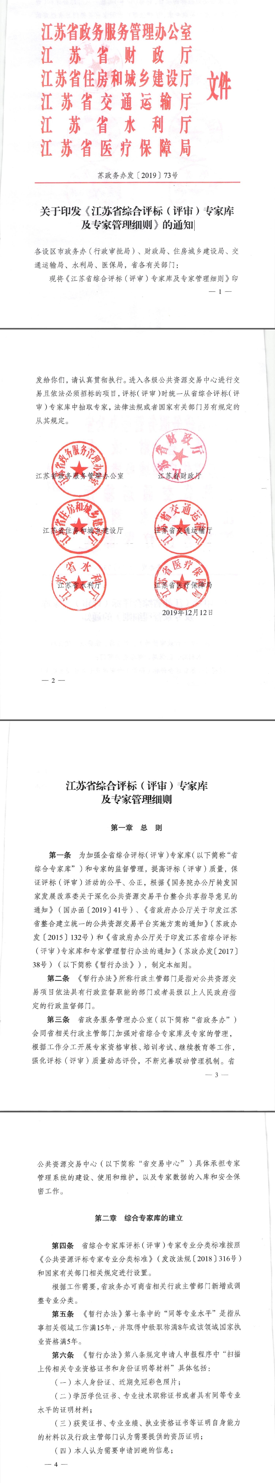 关于印发《江苏省综合评标(评审)专家库及专家管理细则》的通知